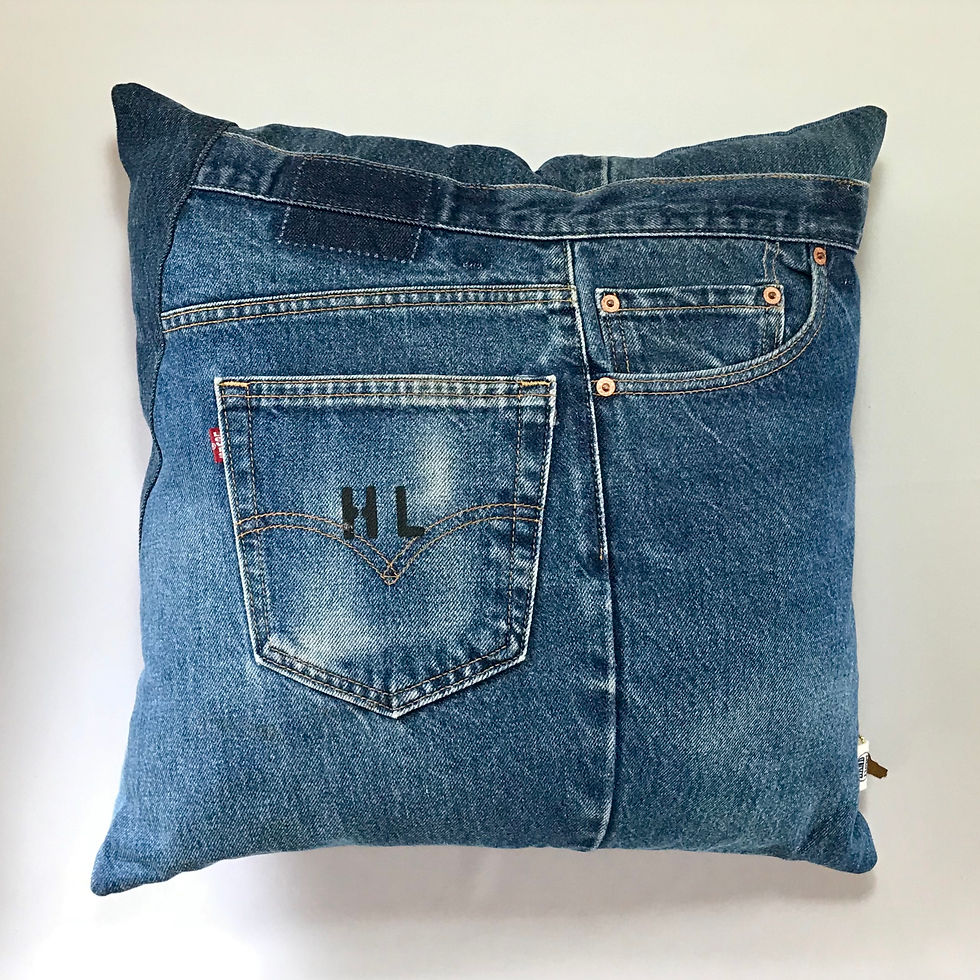 こんにちは、今日の世田谷は梅雨の中休み、チョロっと青空も見える空模様で、気温も低くめで過ごしやすく仕事が捗ります♪そんな週の真ん中水曜日に、ヴィンテージファブリックをリメイクをするブランド『HAND LIGHT』からヴィンテージのデニムパンツを解体してクッションとして再構築した逸品の登場です。